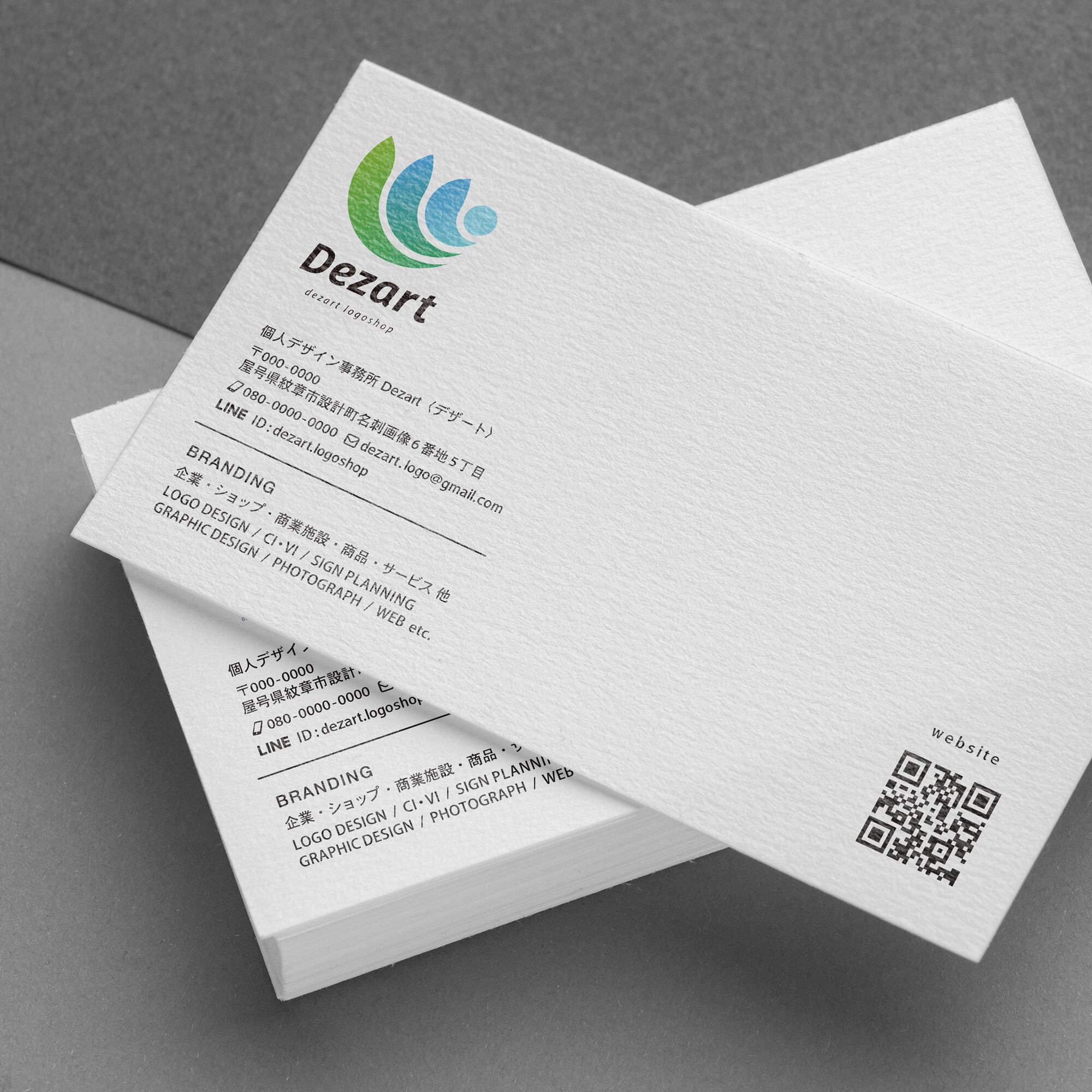 Dezart LogoShopでは、ロゴにピッタリのデザインを、ロゴ・実際の会社情報など入れてご提案しますので、ほぼ完成の状態をご確認いただけます。